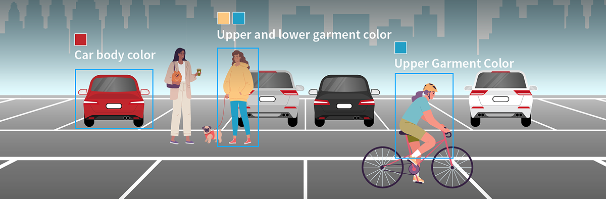 A Recuperação de Cores, ativada pela regra de função SIP ou UMD, detecta atributos-alvo e extrai informações de cores. Atualmente, ela suporta a recuperação de cores para peças de vestuário superiores e inferiores de indivíduos, carrocerias de veículos automotores e peças de vestuário superiores de veículos não automotores. Uma vez coletados, os dados de cores podem ser acessados rapidamente pelo NVR da UNV, reduzindo significativamente o tempo de busca para os usuários.
