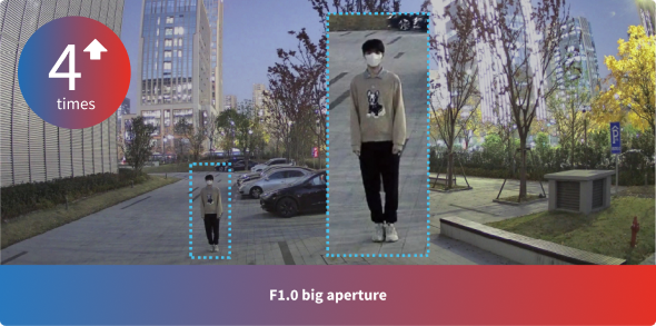 A abertura supergrande F1.0 coleta quatro vezes mais luz do que a abertura F2.0, proporcionando qualidade de imagem que faz a noite parecer dia.