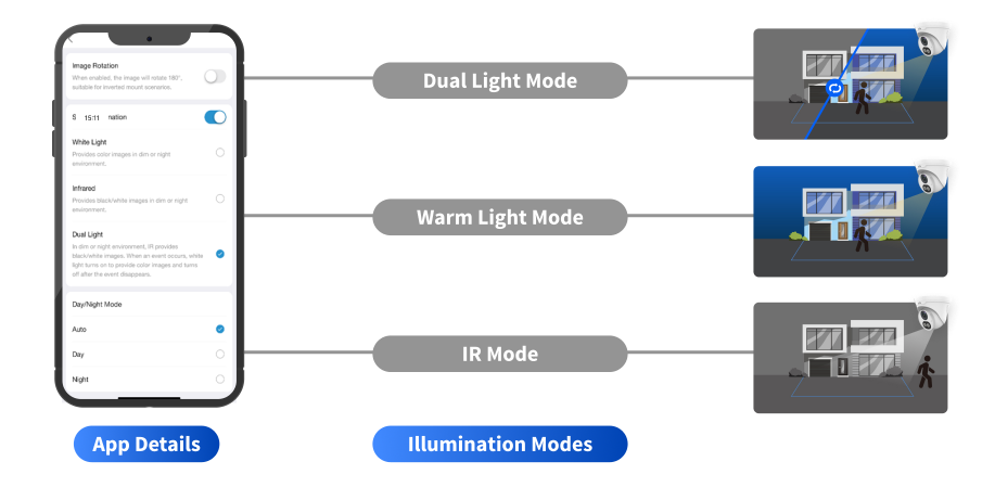 With UNV-Link APP at your fingertips, the illumination mode can be effortlessly switched, making UNV Smart Dual Light solution an easier and efficient choice for analog.