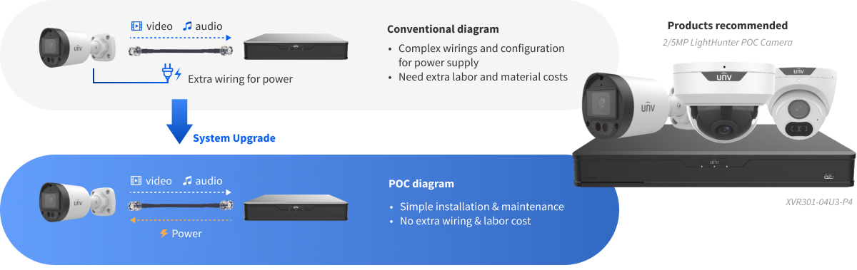 POC technology, one cable for power, video & audio transmission