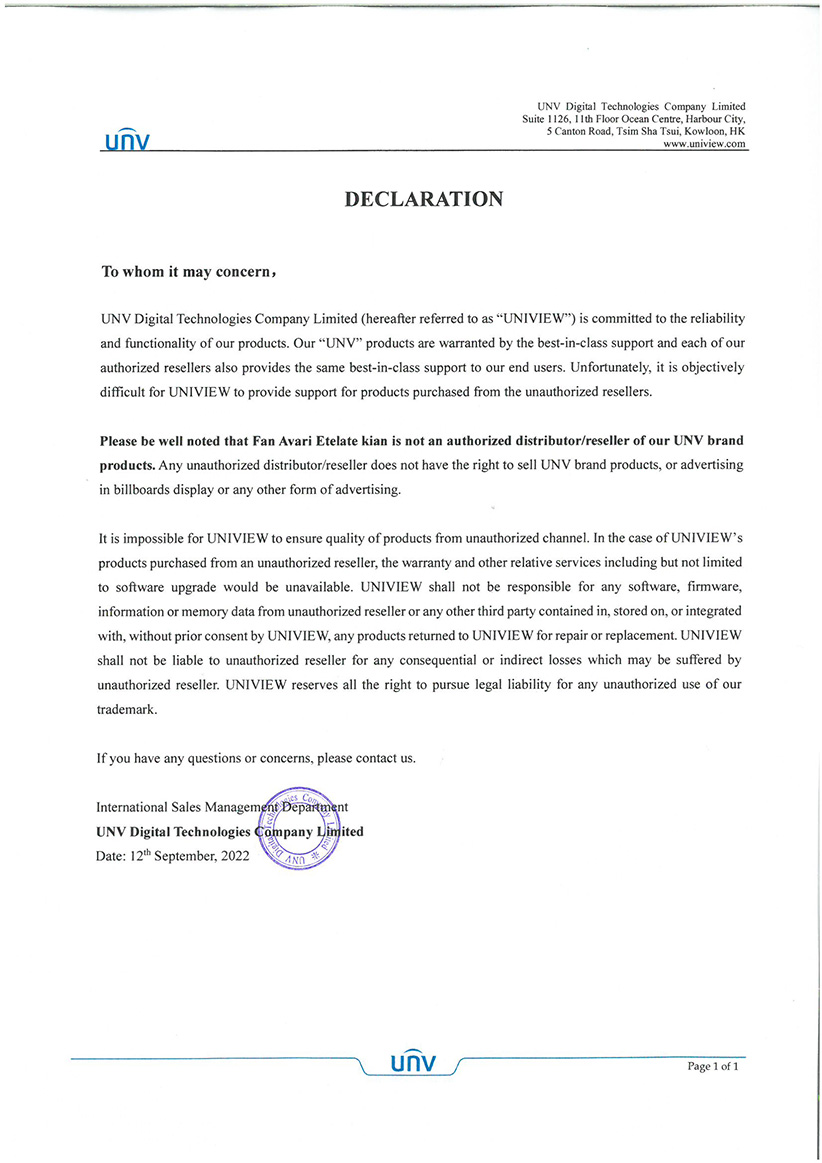 Заявление — UNV Digital — Fan Avari Etelate Kian