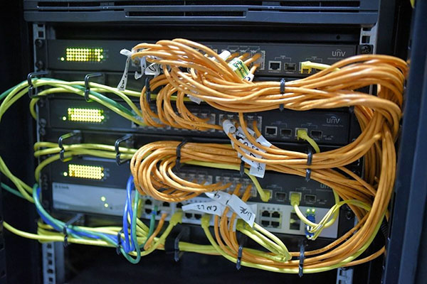 «Как видите, мы использовали коммутатор Uniview PoE для питания камер и оборудование D-Link для подключения оптоволокна от удалённых узлов в эту комнату», — говорит Пейн. «К счастью, при строительстве зданий они были соединены оптоволокном, и мы использовали резервное волокно для системы видеонаблюдения — это отлично помогает изолировать систему. У нас также есть камера в этом сетевом помещении, чтобы видеть, кто заходил и что делал.