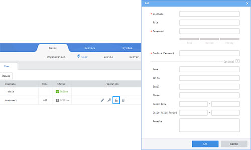 - Admin users can divide into different authority levels through manager authorization. Furthermore, admin users also can log out lower-level users to save resources if needed. In addition, admin users could lock users or set valid date and daily valid time of single user through remote operation.