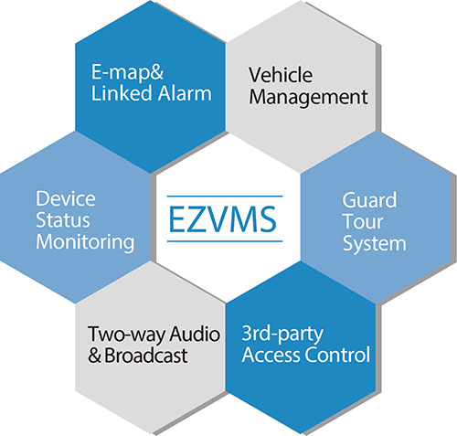 - Integrated with EZAgent, EZVMS is compatible with third-party access control.