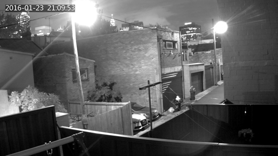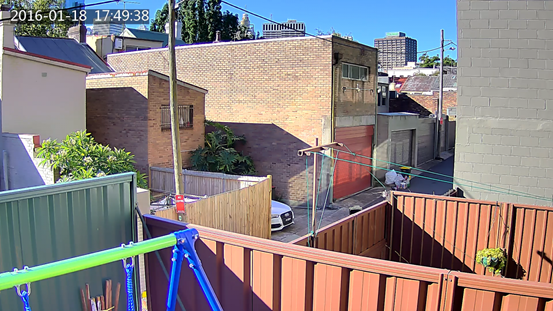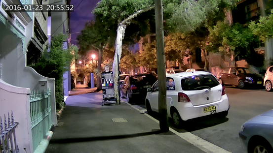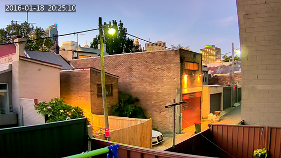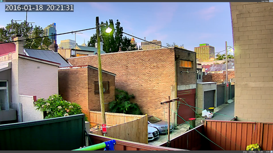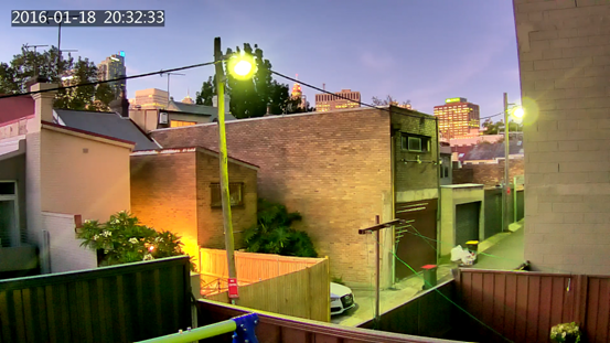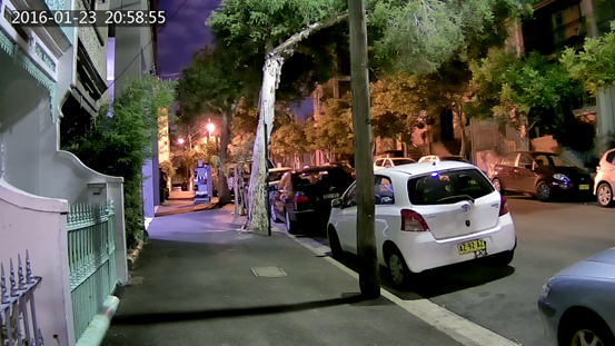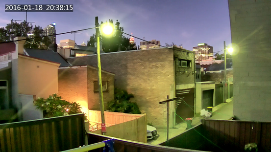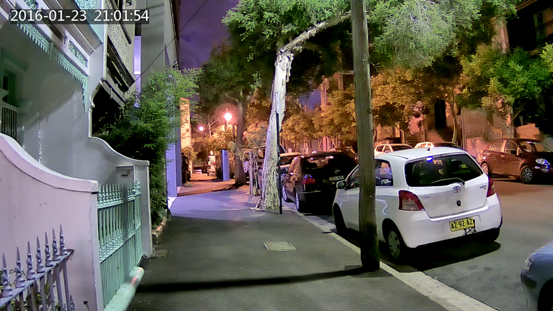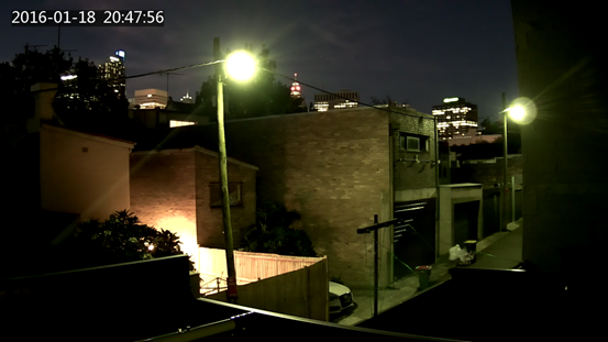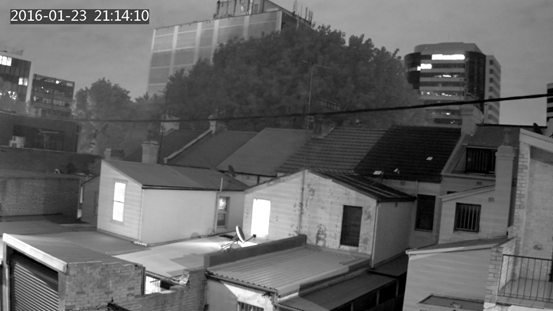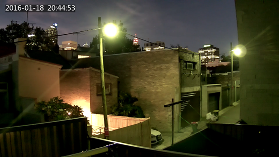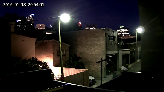 Seeking the borders of performance, I turn the camera away from lit areas of the lane to view the rooftops and trees towards Elizabeth St about 250 metres away down the hill. The levels of detail are exceptional. To the naked eye this scene is generally dark but Uniview’s Starlight is sucking up reflected light like a vacuum cleaner. I keep turning the camera further and further down the lane towards the darkest patch of trees but performance stays uniformly excellent.