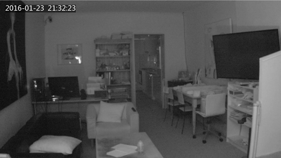 I start off in the office by switching off some lights to provoke auto night mode. Performance in colour in low light is solid but when I start covering my workstation screens to push the camera into night mode, it’s better still – the scene is well under 1 lux and I have good situational awareness. Throwing a small amount of infrared light onto the scene shows how responsive the camera is to IR – it’s really, really good. Very little infrared gives complete situational awareness throughout the 4m x 12m office and out into the kitchen. When I turn all the lights off, including IR, and check for motion blur, it’s clear the shutter speed has slowed down but motion blur remains well controlled.