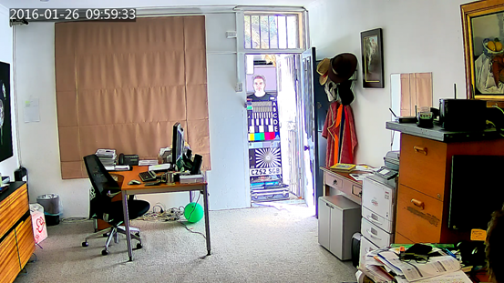 My last test is a WDR test in the morning with 81,900 lux measured. I measure at 5, 3 and 1.5 metres – a little closer than usual – and I’m at the front door instead of the rear door of the office to catch the easterly sun. For a camera that offers such good performance at night, Starlight puts in an unexpectedly excellent turn with extreme WDR, too. I have the office lights on (I usually have the kitchen light on at the rear and it cause a little yellow shift in the images that relates to my still advanced WDR +1 setting.